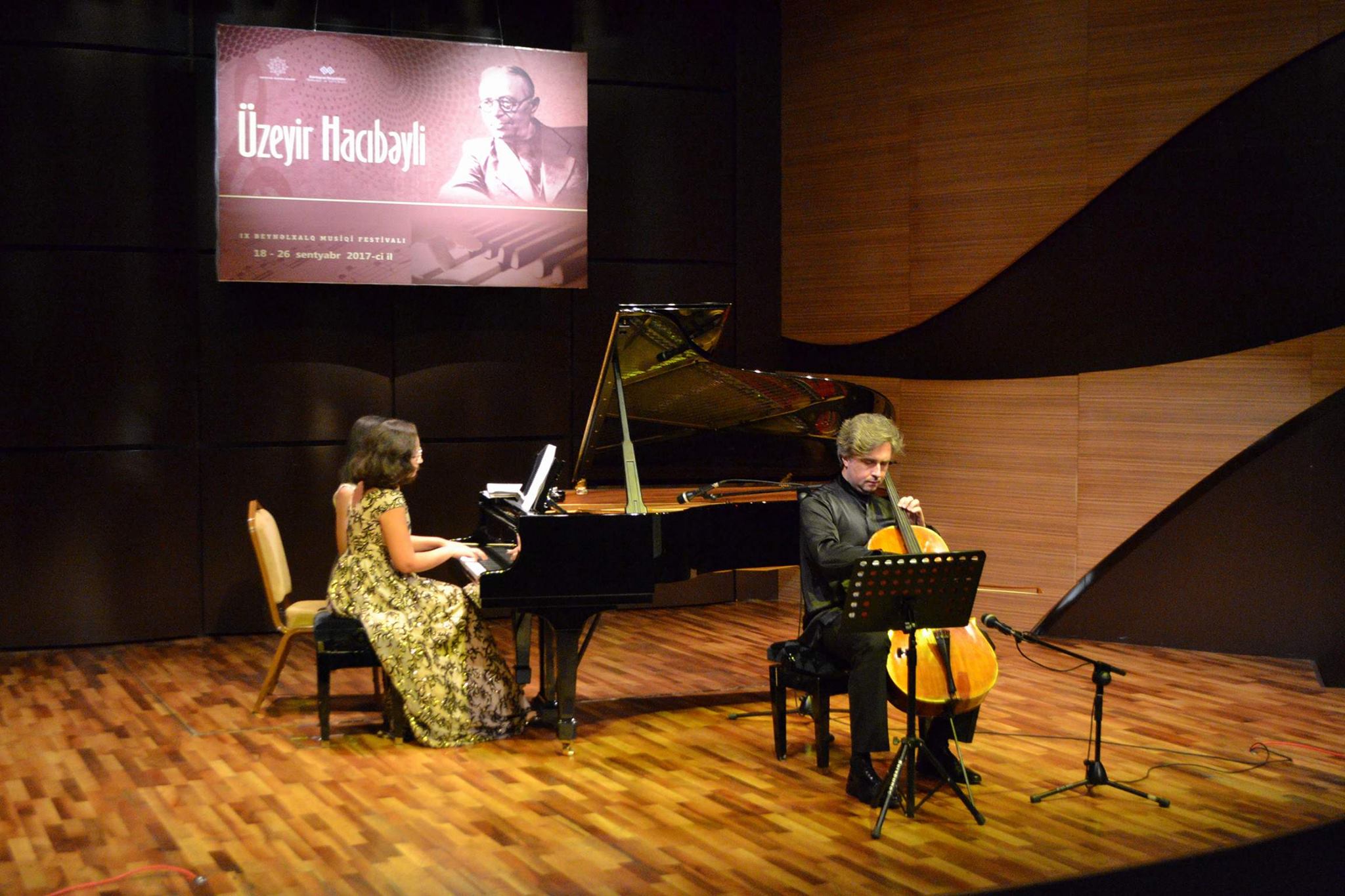 Heydər Əliyev Fondunun və Mədəniyyət və Turizm Nazirliyinin birgə keçirdiyi Üzeyir Hacıbəyli adına IX Beynəlxalq Musiqi festivalı çərçivəsində Beynəlxalq Muğam Mərkəzinin səhnəsində “Iki qəlbin dastanı” adlı kamera musiqisi gecəsi keçirildi.